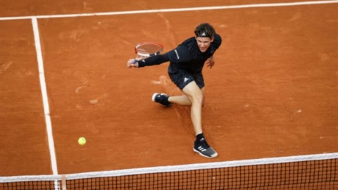 | L'Autrichien Dominic Thiem, lors de son match contre l'Américain Jack Sock, le 30 septembre 2020 à Roland-Garros. |