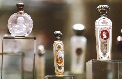| Des boîtes de parfum exposées dans le musée du parfum Fragonard à Paris. |