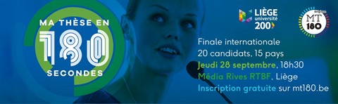 À destination des doctorants francophones, «Ma thèse en 180 secondes» est un concours dont le défi est de présenter l’objet de leurs longues années de recherche en 3 minutes. Cette année, 20 doctorants issus de 15 pays s’affronteront durant la finale internationale du concours organisée à Liège (Belgique), le 28 septembre prochain.