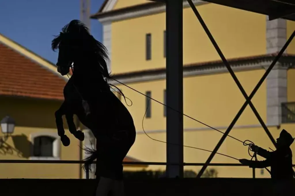 | Une cavalière de l'école d'art équestre de Lisbonne prépare un pur-sang lusitanien avant un spectacle de dressage à Lisbonne, le 15 janvier 2024 au Portugal. |