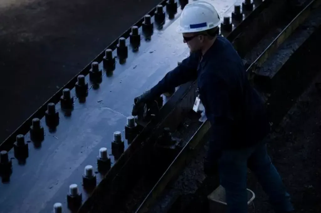 | Un ouvrier nettoie les rails qui soutiennent le radiotélescope de l'observatoire de Green Bank, en Virginie-Occidentale, le 20 mai. |