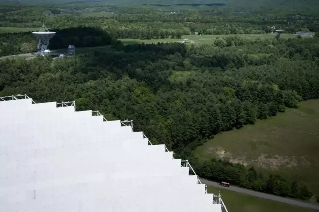 | Le radiotélescope de l'observatoire de Green Bank, le 21 mai en Virginie-Occidentale. |
