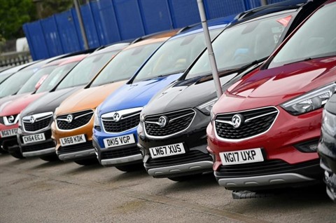| Des véhicules garés devant une concession automobile Vauxhall dans le nord de Londres, le 4 juin. |