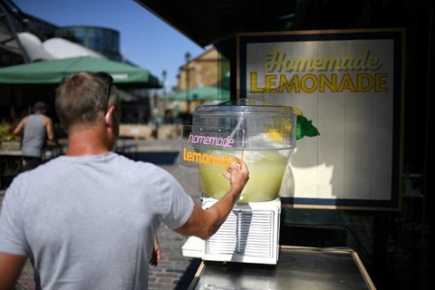 | Signalisation sur sa limonade sur un étal de Camden Market à Londres, le 1er juin |