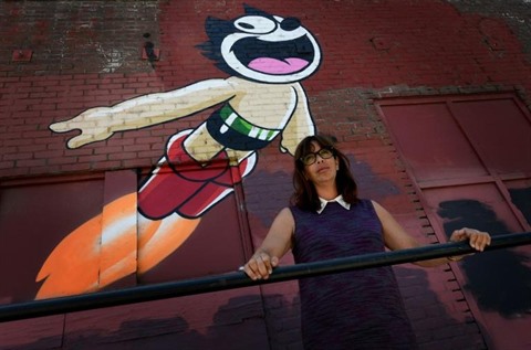 | La galeriste Eva Chimento dans le quartier de Boyle Heights, à Los Angeles, le 28 juillet 2017. |