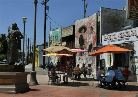 À Boyle Heights, où presque toutes les enseignes sont en espagnol, "les gens sont très pauvres, c'est l'un des seuls quartiers de Los Angeles où la population latino peut survivre, à cause de la langue" et de la culture, remarque James Rojas, urbaniste, artiste et militant.