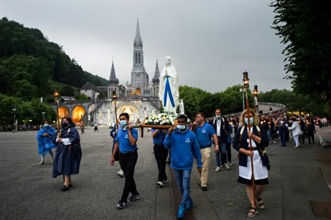 Bien que ce redémarrage soit "encore timide" par rapport à l'affluence de 2019, quelques étrangers, en particulier des Espagnols et des Italiens, "commencent à revenir", note le recteur du sanctuaire, Olivier Ribadeau Dumas.