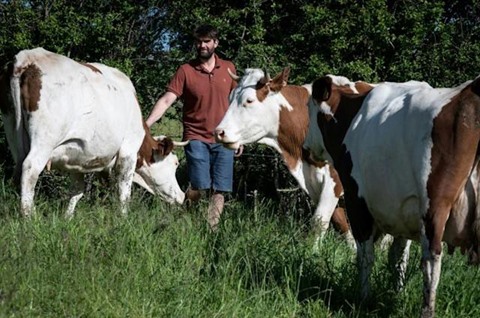 | L'éleveur français Adrien Mazet produit 200.000 litres de lait par an, dont la moitié sert à produire des yaourts servis aux cantines lyonnaises. |