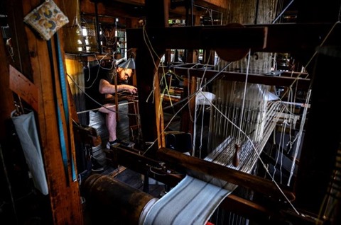 | Un artisan travaille sur un métier à soie à la manufacture Prelle à Lyon, le 16 septembre. |
