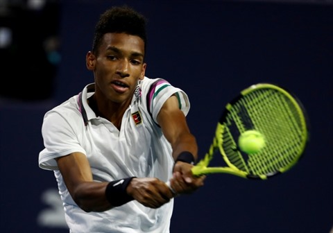 | Le Canadien Félix Auger Aliassime lors de l'Open de Miami le 27 mars. |