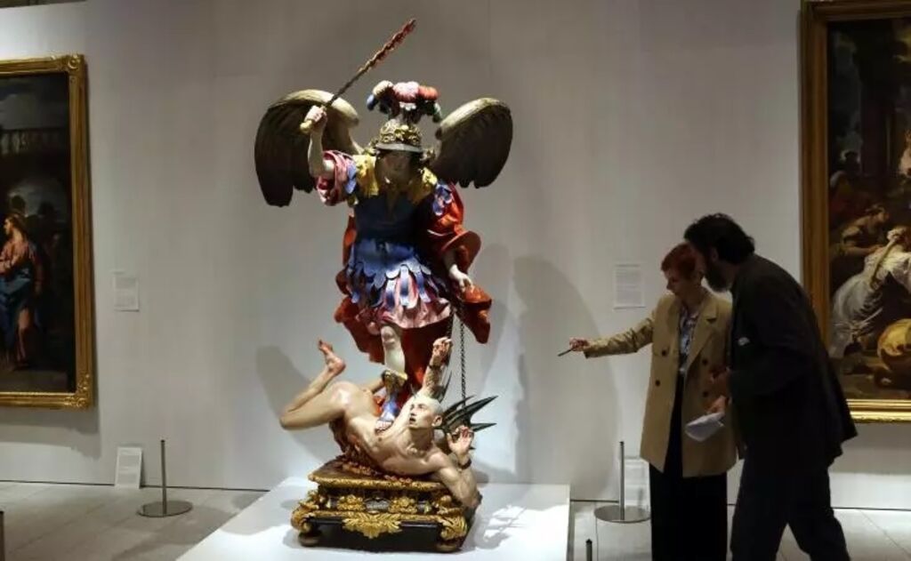 | Une statue de l'archange Saint Michel à la Galeria de las Colecciones Reales (Galerie des collections royales) à Madrid, le 7 juin. |
