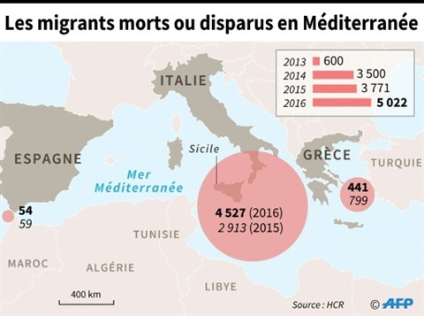 Près de 1.200 migrants ont péri en mer entre la Libye et l'Italie au cours de l'hiver, dont 190 enfants, soit 13 fois plus qu'à la même période un an plus tôt, selon les évaluations du Fonds de l'ONU pour l'enfance (UNICEF).