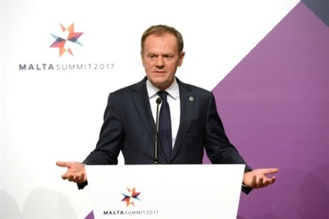 | Le président du Conseil européen, Donald Tusk, le 3 février 2017 à Malte. |