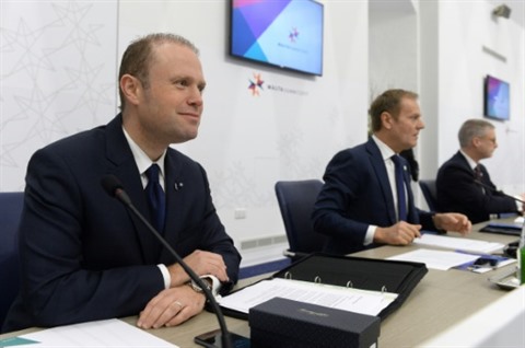 | Le Premier ministre de Malte, Joseph Muscat (gauche), le 3 février à Malte. |
