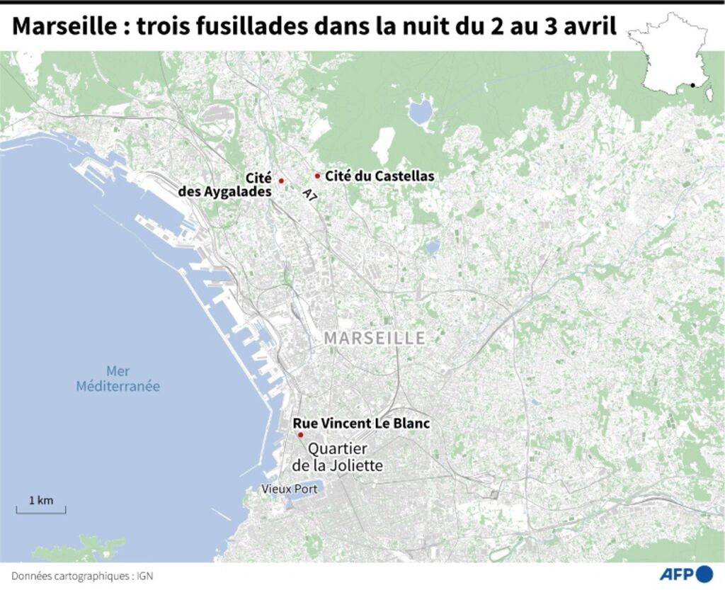 | Marseille : trois fusillades dans la nuit du 2 au 3 avril. |