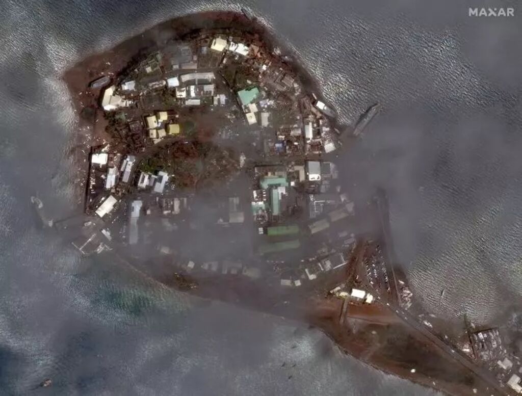 | Cette image satellite montre une vue du port de Dzaoudzi, sur l'archipel français de Mayotte dans l'océan Indien, le 16 décembre, après le passage du cyclone Chido. |