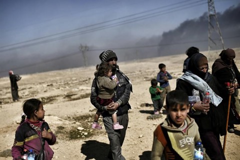 | Des habitants de Mossoul fuient les combats entre les forces irakiennes et les jihadistes de l'EI, le 24 février. |