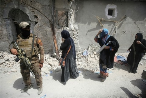 Tout juste libérés par les troupes irakiennes après des mois bloqués dans la vieille ville, des dizaines de civils continuaient d'affluer par petits groupes comprenant de nombreux enfants, y compris des bébés.