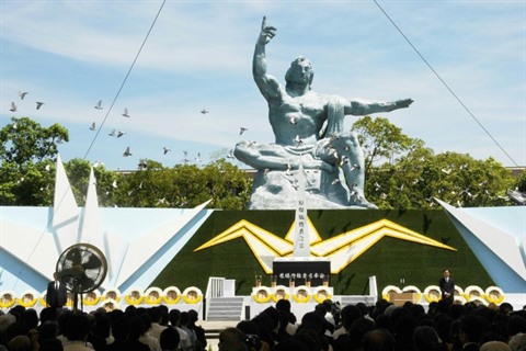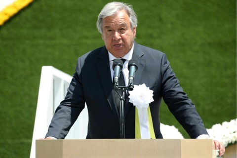 | La commémoration du bombardement de la ville de Nagasaki se déroule en présence du secrétaire général de l'ONU, Antonio Guterres, le 9 août. |