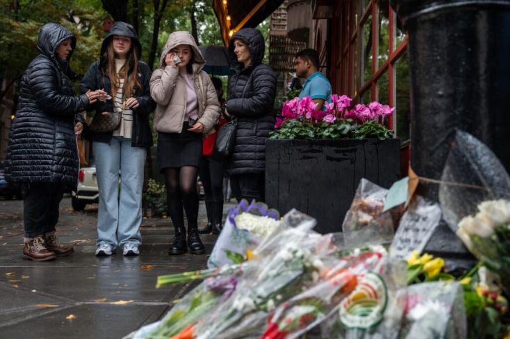 | Des personnes viennent rendre hommage à l'acteur Matthew Perry devant "l'immeuble" de la série "Friends" à New York, le 29 octobre. |