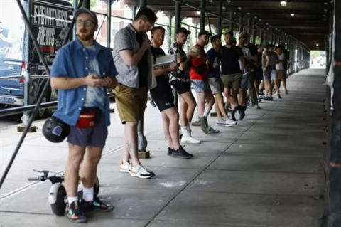 À l'extérieur, dans le quartier de Bushwick, une longue file d'attente s'est formée sur le trottoir, pour une très grande majorité des hommes âgés d'une vingtaine à une quarantaine d'années, désireux de protéger leur entourage et d'éviter la variole du singe, ses éruptions cutanées et ses douleurs.