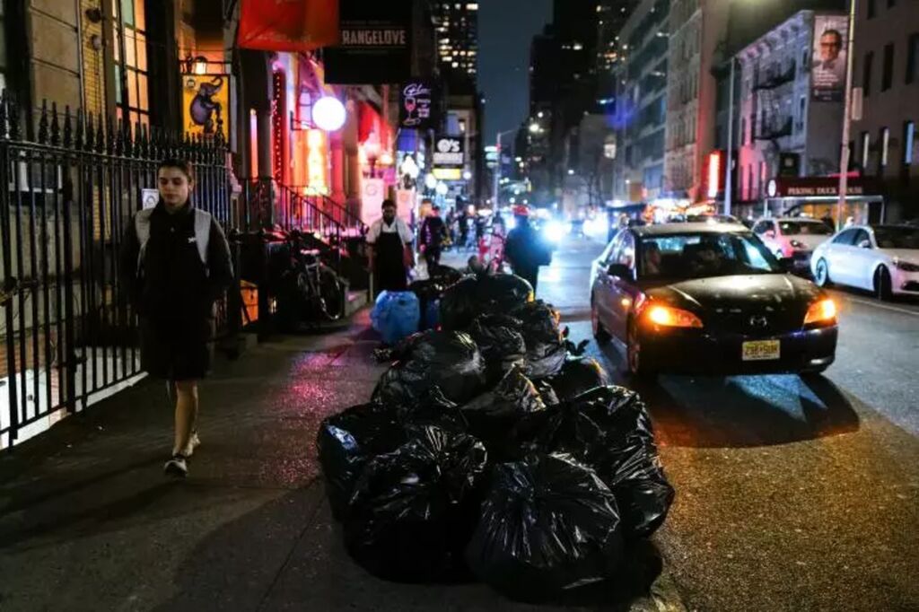 | Des sacs poubelles à Manhattan, New York, le 20 mars. |
