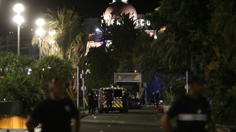 Vers 01h30, des dizaines de camions de pompiers et de véhicules de secours étaient encore déployés sur la Promenade des Anglais, où était aussi posé un hélicoptère de la sécurité civile.
