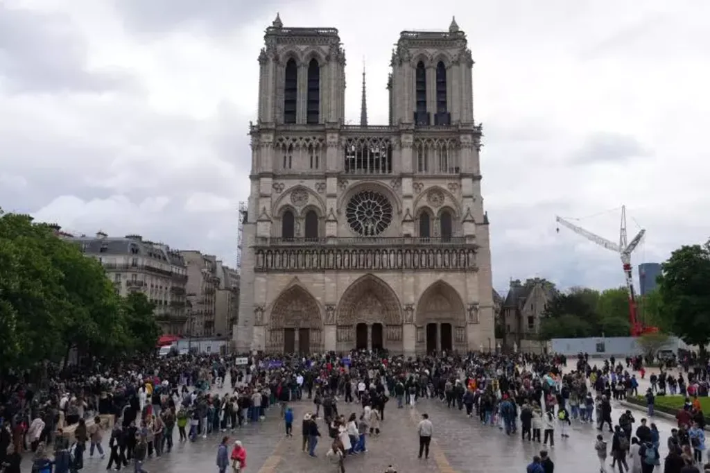 | La cathédrale Notre-Dame de Paris le 21 avril 2025, à l'annonce de la mort du pape François. |