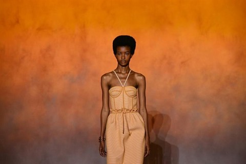 Le Nigérian Kenneth Ize baptise sa collection "nouvelle aube" et y met des touches dorées.