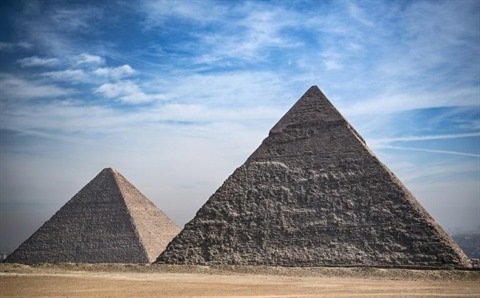 | La pyramide de Khéops (gauche) et de Khéphren, à Guizeh en janvier 2021, en Égypte. |