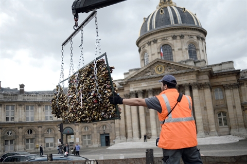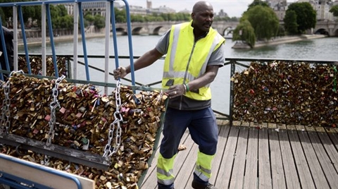| Paris, première ville dans le monde à se débarrasser des cadenas, continuera à enlever les cadenas un à un sur tous les autres ponts. |