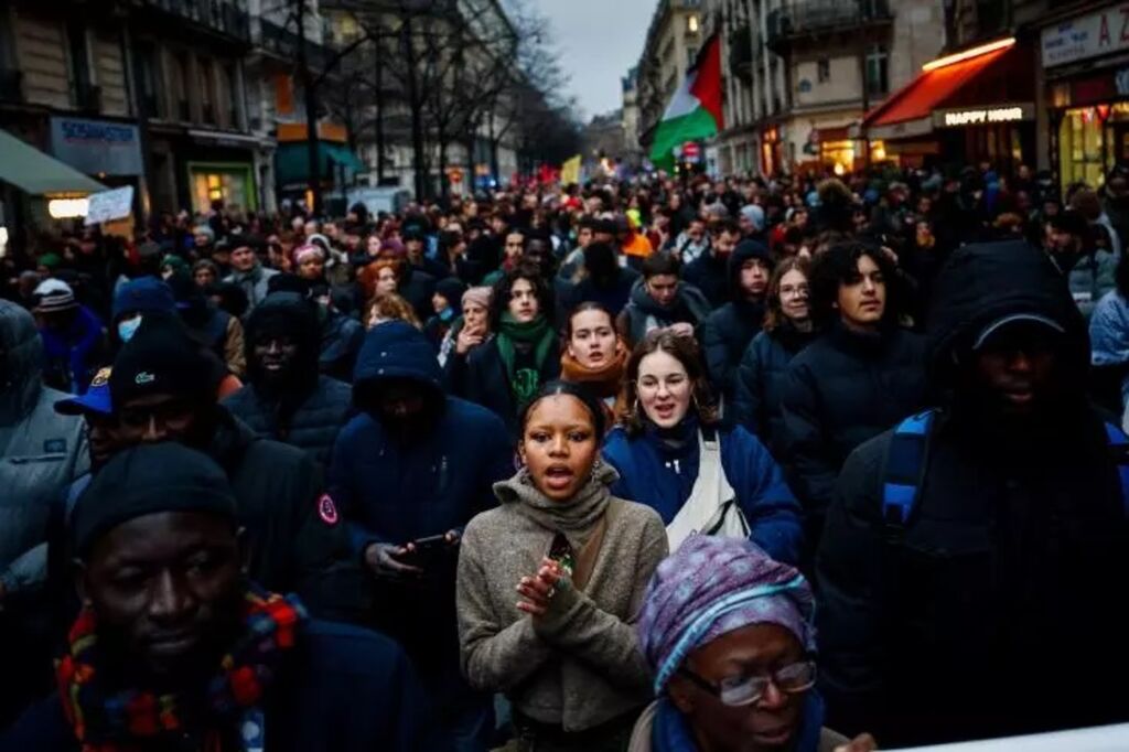 | Manifestants contre la loi immigration à Paris le 22 décembre 2023. |