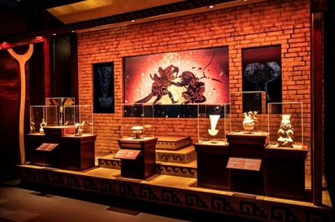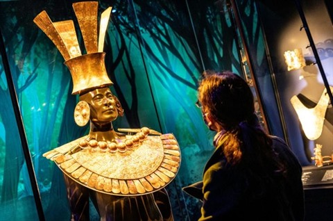 Parures royales, bijoux et objets de culte en turquoise, tuniques de momies...: outre une profusion de splendeur, le visiteur découvre "comment ces sociétés pensaient et voyaient le monde sur trois niveaux : celui d'en haut supérieur, céleste; celui d'en bas, des ancêtres et des morts; et au milieu, celui des hommes", raconte la commissaire.