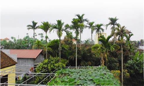 À la différence d’autres villages du delta du fleuve Rouge agrémentés de touffes de bambou, le village de Phu Lê, dans le district de Thach Thât, ville de Hanoi, «fait le coquet» avec ses rangées d’aréquiers. Il s’agit d’un palmier à tige élancée dont les fruits, appelés «noix d’arec», poussent en grappes. Dans ce village agricole, chaque maison a au moins quelques aréquiers et une tonnelle de bétel. Une feuille de bétel, un quartier d’arec et un tout petit peu de chaux vive, cela suffit pour faire cette fameuse chique de bétel qu’adorent les gens, les personnes âgées notamment.