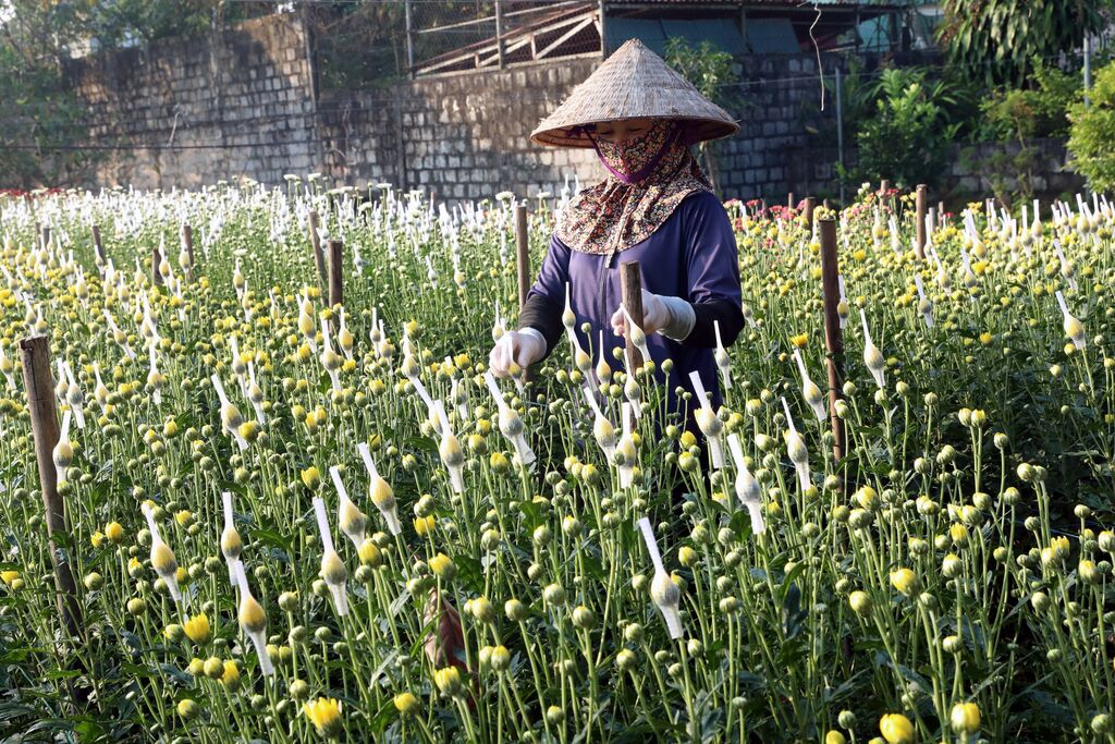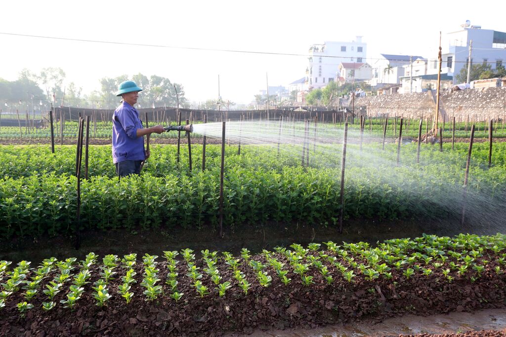| Les habitants poursuivent avec soin la culture de leurs plantes, espérant une bonne récolte de fleurs pour le Têt. |