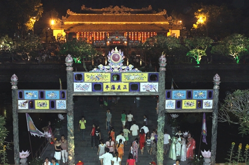 | La fête «Nuit royale» dans le cadre du Festival de Huê au Palais impérial de Huê. |