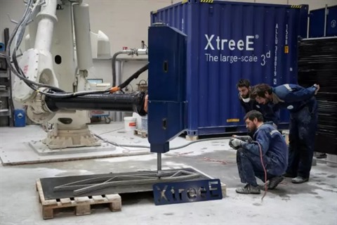Pour la 3D, "nous avons développé un béton de haute performance pour résister aux pressions, mais moins dosé en ciment pour réduire les émissions de gaz à effet de serre", explique Olivier Martinage, responsable de l'impresssion 3D béton du groupe cimentier Vicat qui a participé à l'aventure. Son prochain défi, utiliser aussi des granulats recyclés dans l'imprimante, pour réduire encore l'impact sur le climat, le processus de fabrication du ciment étant très émetteur de dioxyde de carbone.