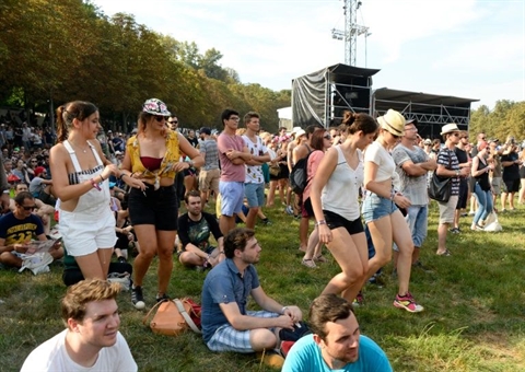 | Des gens assistent au festival Rock en Seine, à Paris le 26 août 2016. |