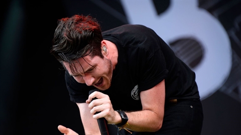 | Le chanteur britannique Dan Smith du groupe Bastille au festival Rock en Seine à Saint-Cloud près de Paris le 26 août 2016. |