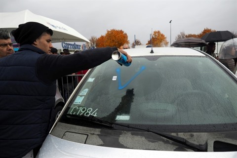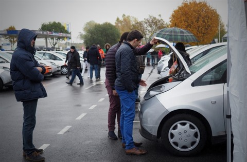 Après une dizaine de minutes de vente, au rythme de groupes de quatre visiteurs, la file des acheteurs s'est vite allongée et les voitures déjà vendues se signalent avec leurs balais d'essuie-glace relevés. Tout est parti en une heure.