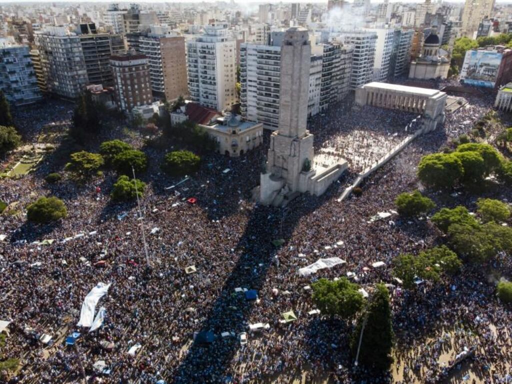 L'amour de l'Albiceleste, en plus de la liesse du sacre mondial, a offert à Rosario l'émouvant spectacle de voir les supporters de deux clubs rivaux, au relations souvent violentes par le passé, s'unir dans une même marée ciel et blanc.