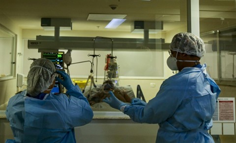 | Des soignants s'équipent avant d'entrer dans l'unité de soins intensifs à l'hôpital Emilio Ribas à Sao Paulo, le 20 avril. |