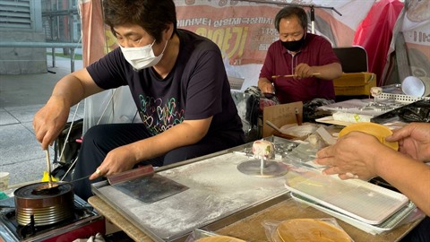Désormais, leur modeste étal, situé dans une rue du quartier des théâtres à Séoul, est l’un des lieux les plus prisés de la capitale sud-coréenne. Dès l’ouverture, les gens se pressent dans l’espoir d’acheter une de ces friandises qu’ils fabriquent sur place et vendent 2.000 won (environ 1,45 euro). Il n’est pas rare que les clients doivent patienter jusqu’à six heures. Certains finissent par abandonner et repartent les mains vides.