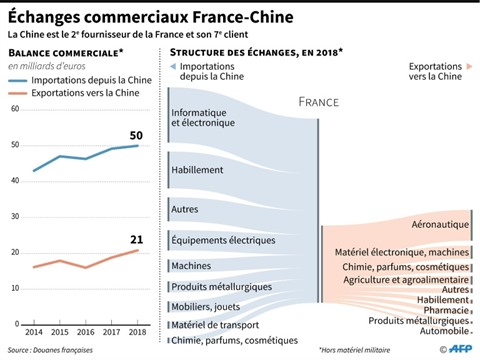 La Chine est actuellement le 7e client de la France et son 2e fournisseur. Les exportations tricolores vers ce pays ont progressé de 11% l'an dernier et représenté 21 milliards d'euros.