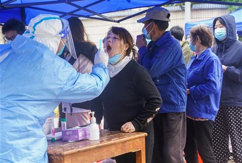 | Prélever l'échantillon de test du COVID-19 à Shanghai, le 26 mars. |