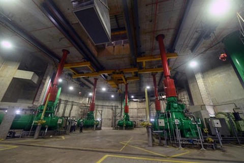 | La salle des pompes de l'usine de traitement des eaux usées de Changi, le 27 juillet à Singapour. |