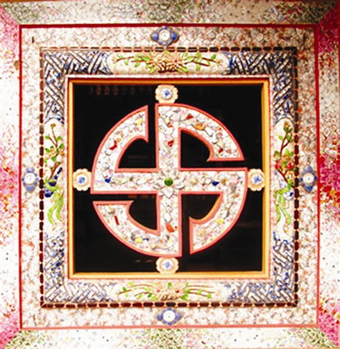 À première vue, le toit du sanctuaire semble entièrement recouvert de briques. En réalité, 60% de la toiture a été décorée avec les morceaux des récipients brisés. C’est grâce aux mains habiles des bonzes que l’œuvre a été achevée avec succès. Les motifs en relief sont variés : fleurs, animaux, paysages naturels...