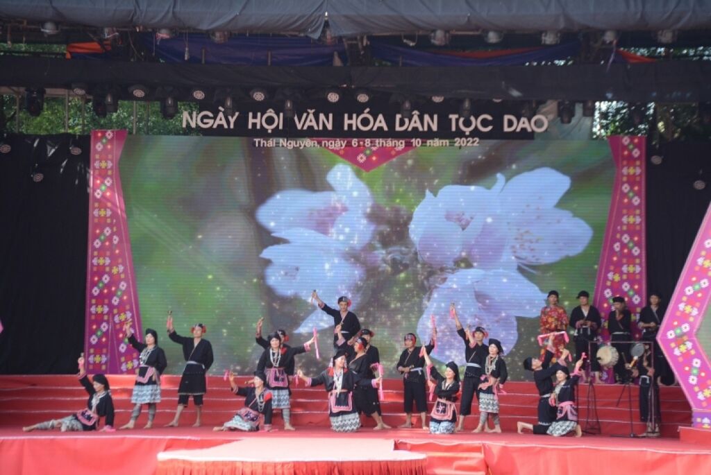 | La troupe artistique de Piêng Sàng au Festival national de la culture Dao 2022 dans la province de Thai Nguyên (Nord). |