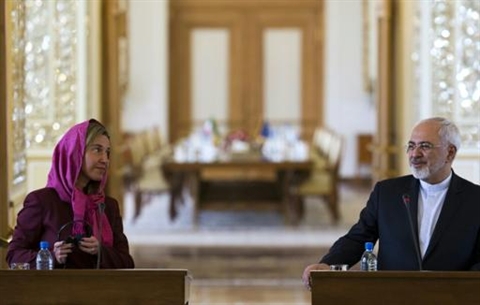 Elle a discuté avec M. Zarif et le président Hassan Rohani de leur volonté commune d'appliquer l'accord qui vise à limiter au nucléaire civil le programme iranien contre une levée progressive et réversible des sanctions internationales, et d'entamer un dialogue de haut niveau.