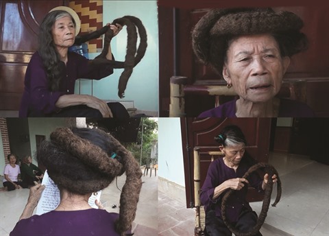 Trinh Thi Nghiên, 81 ans, habite au village 12 de la commune de Xuân Phu, district de Tho Xuân, province de Thanh Hoa. Sa célébrité, elle la doit à sa longue chevelure de près de 3 m. «Un jour, il y a 22 ans, j’ai senti quelque chose d’un peu désagréable sur ma tête. Peu de temps après, j’ai constaté l’apparition d’une torsade de cheveux impossible à coiffer ni à démêler. Et c’est ainsi que j’ai laissé pousser mes cheveux», raconte-t-elle.